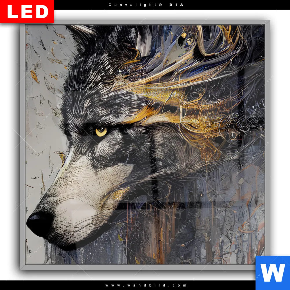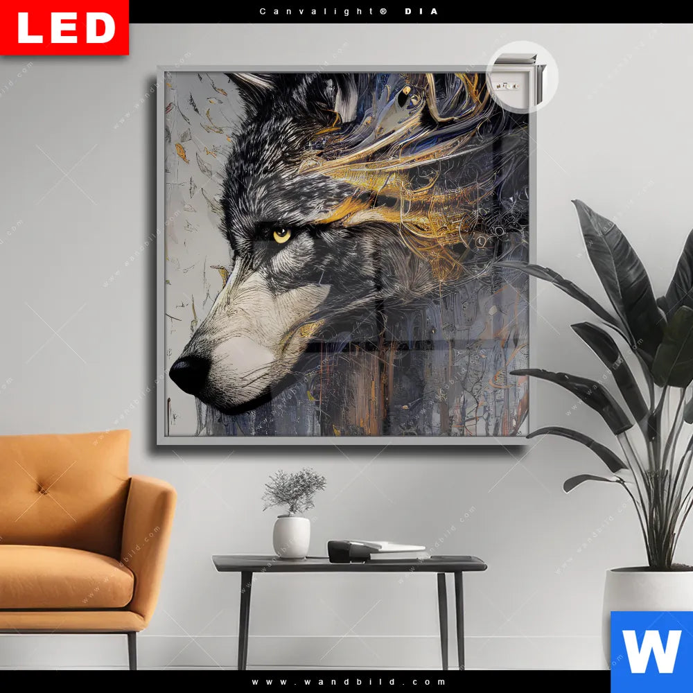 Canvalight® DIA Leuchtbild | Abstrakter Wolf in Gold und Grau | Quadrat
