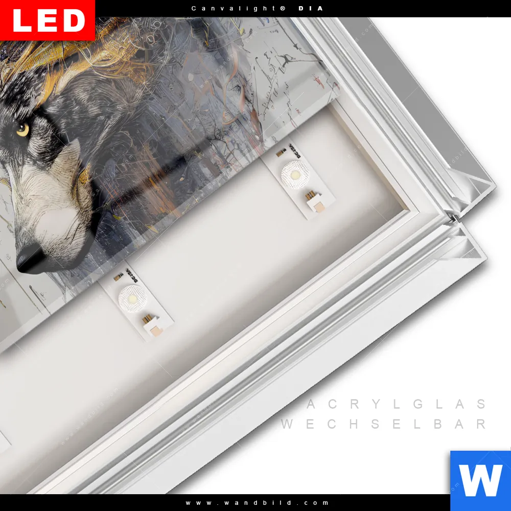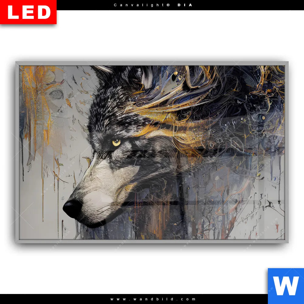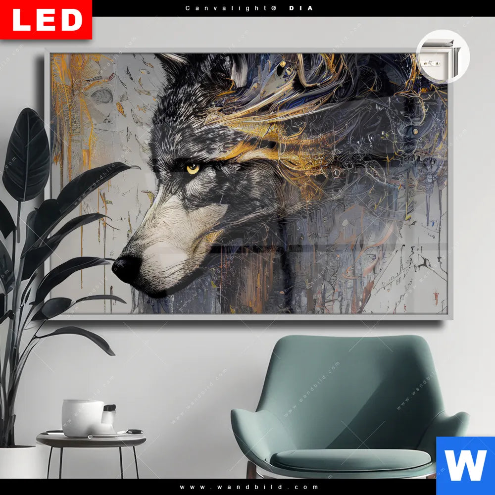 Canvalight® DIA Leuchtbild | Abstrakter Wolf in Gold und Grau | Querformat