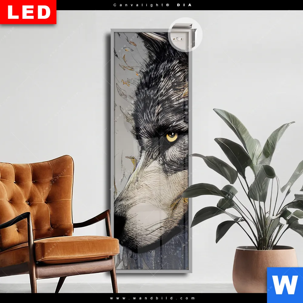 Canvalight® DIA Leuchtbild | Abstrakter Wolf in Gold und Grau | Schmal