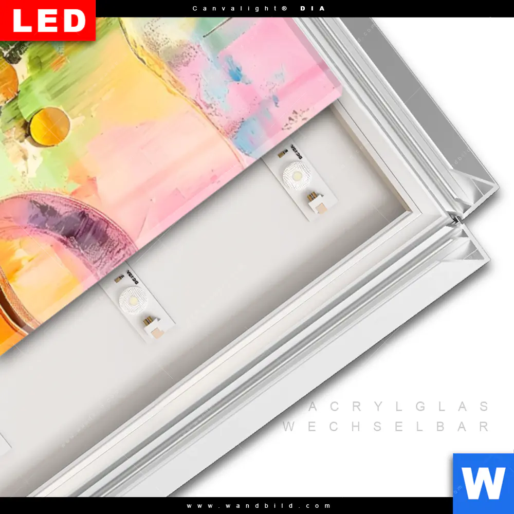 LED-Glasbild mit austauschbarem Acrylglas-Druck (Wechselbild)