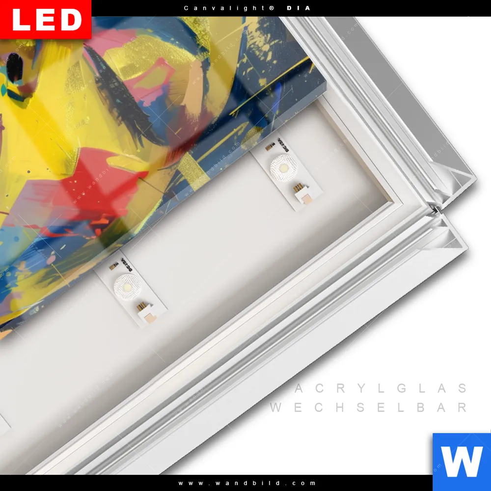 LED-Glasbild mit austauschbarem Acrylglas-Druck (Wechselbild)