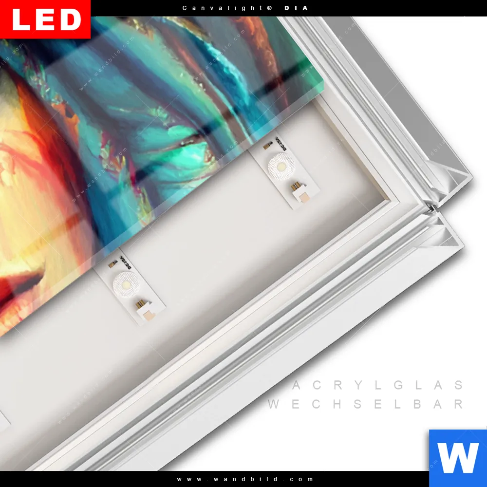 LED-Glasbild mit austauschbarem Acrylglas-Druck (Wechselbild)