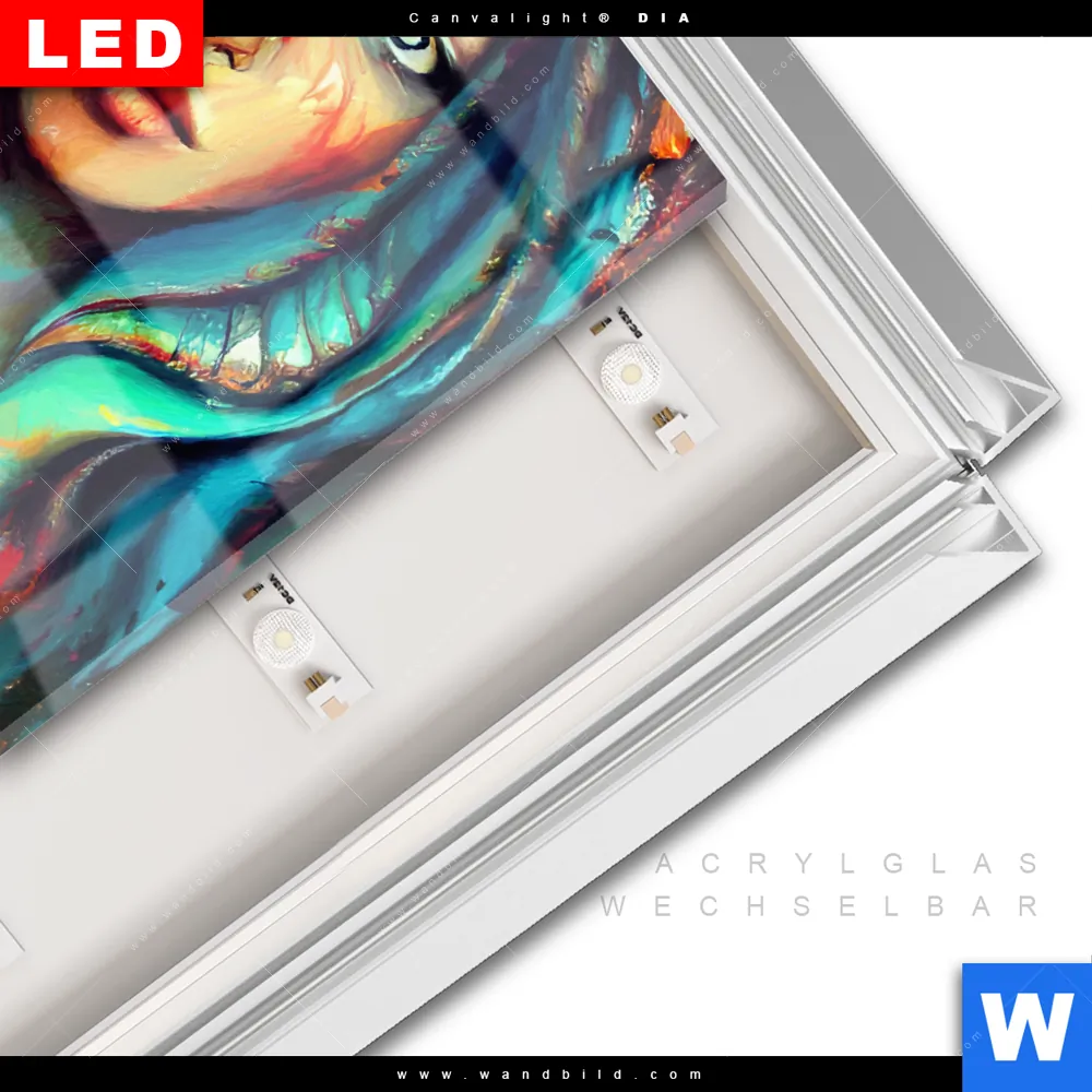 LED-Glasbild mit austauschbarem Acrylglas-Druck (Wechselbild)