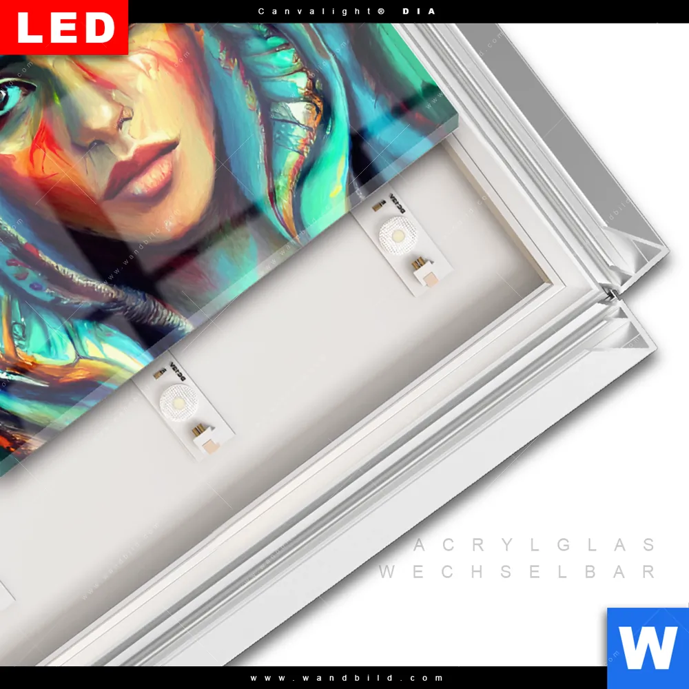 LED-Glasbild mit austauschbarem Acrylglas-Druck (Wechselbild)