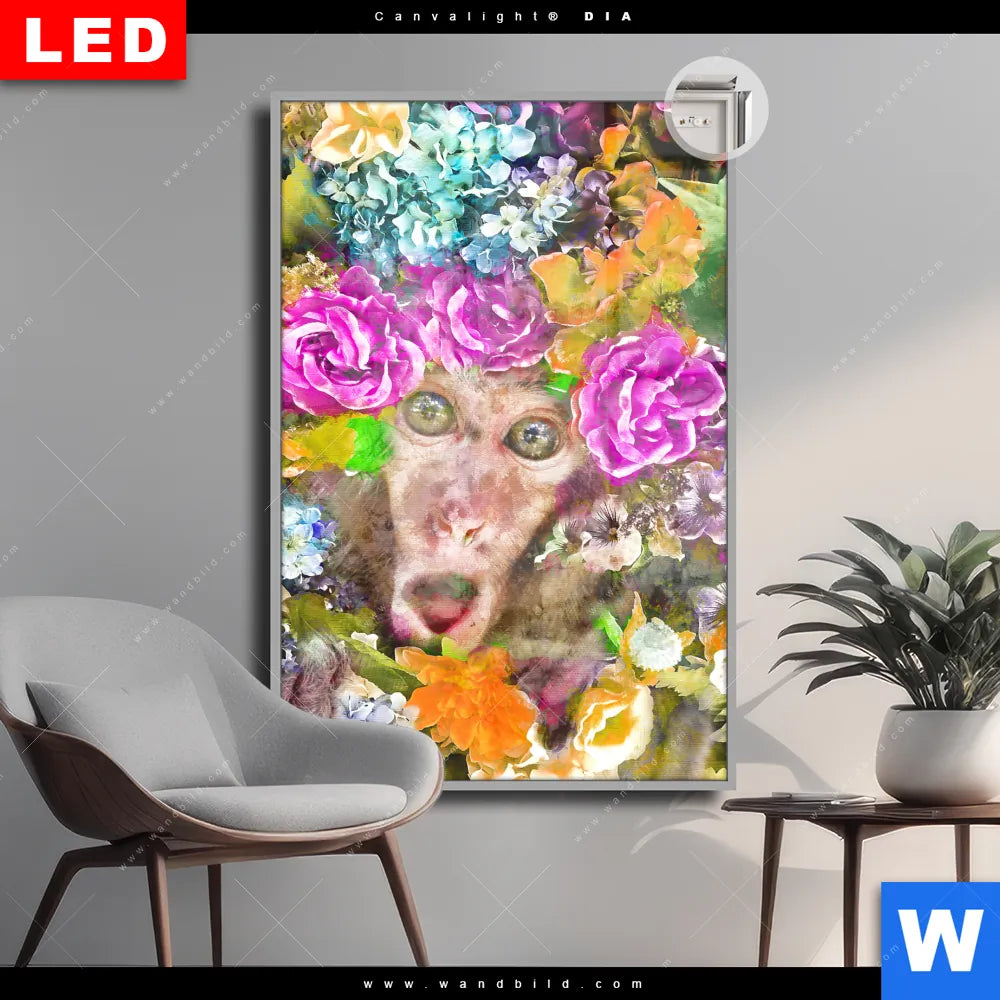 Canvalight® DIA Leuchtbild | Äffchen & Blumen | Hochformat