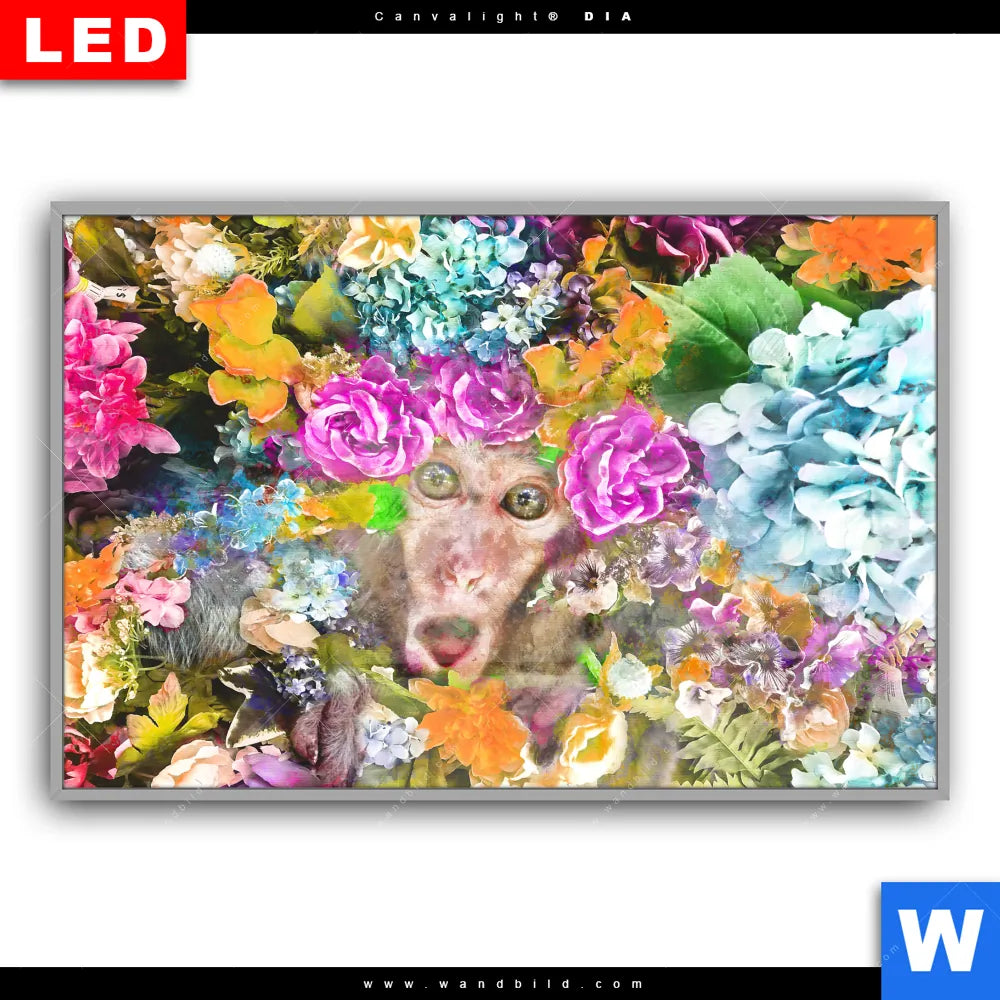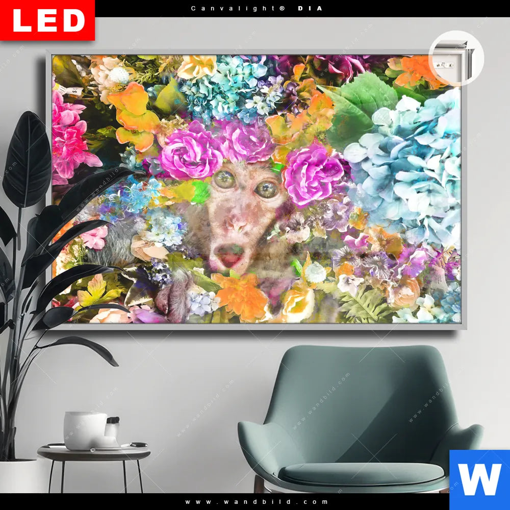 Canvalight® DIA Leuchtbild | Äffchen & Blumen | Querformat