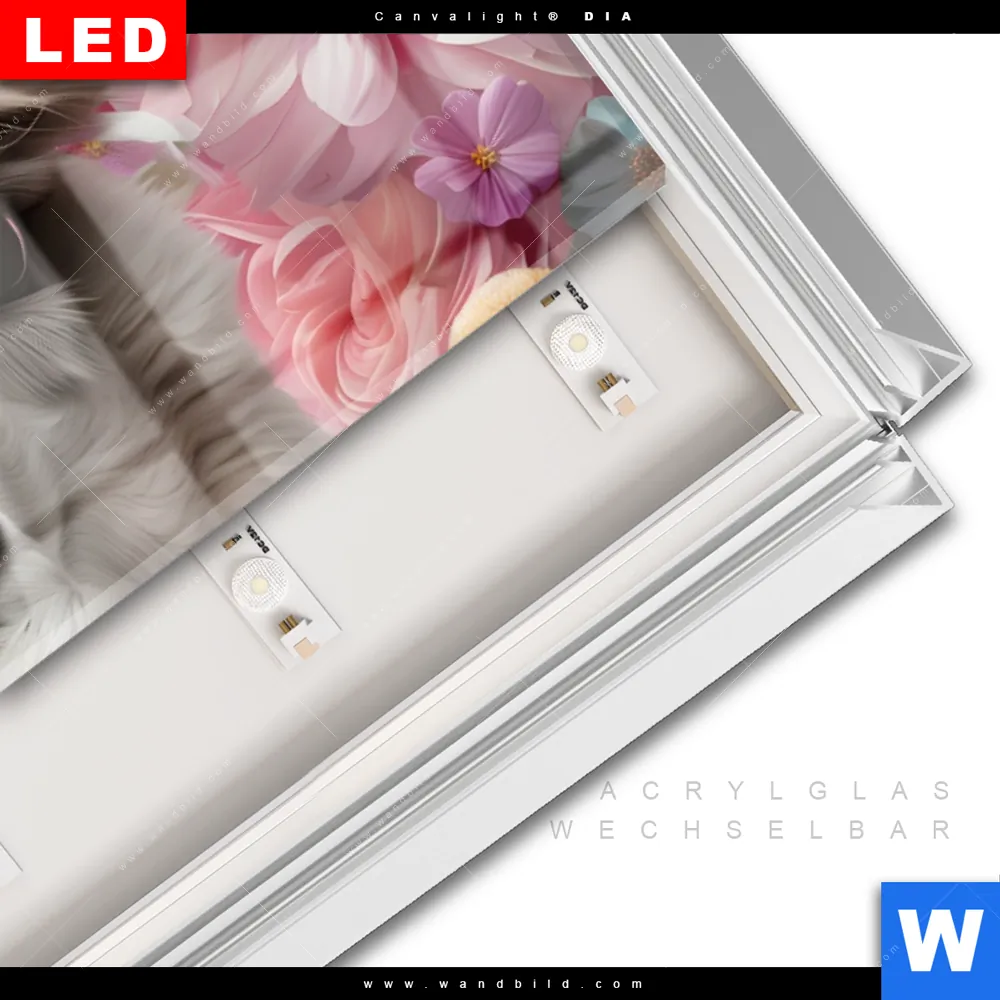 LED-Glasbild mit austauschbarem Acrylglas-Druck (Wechselbild)