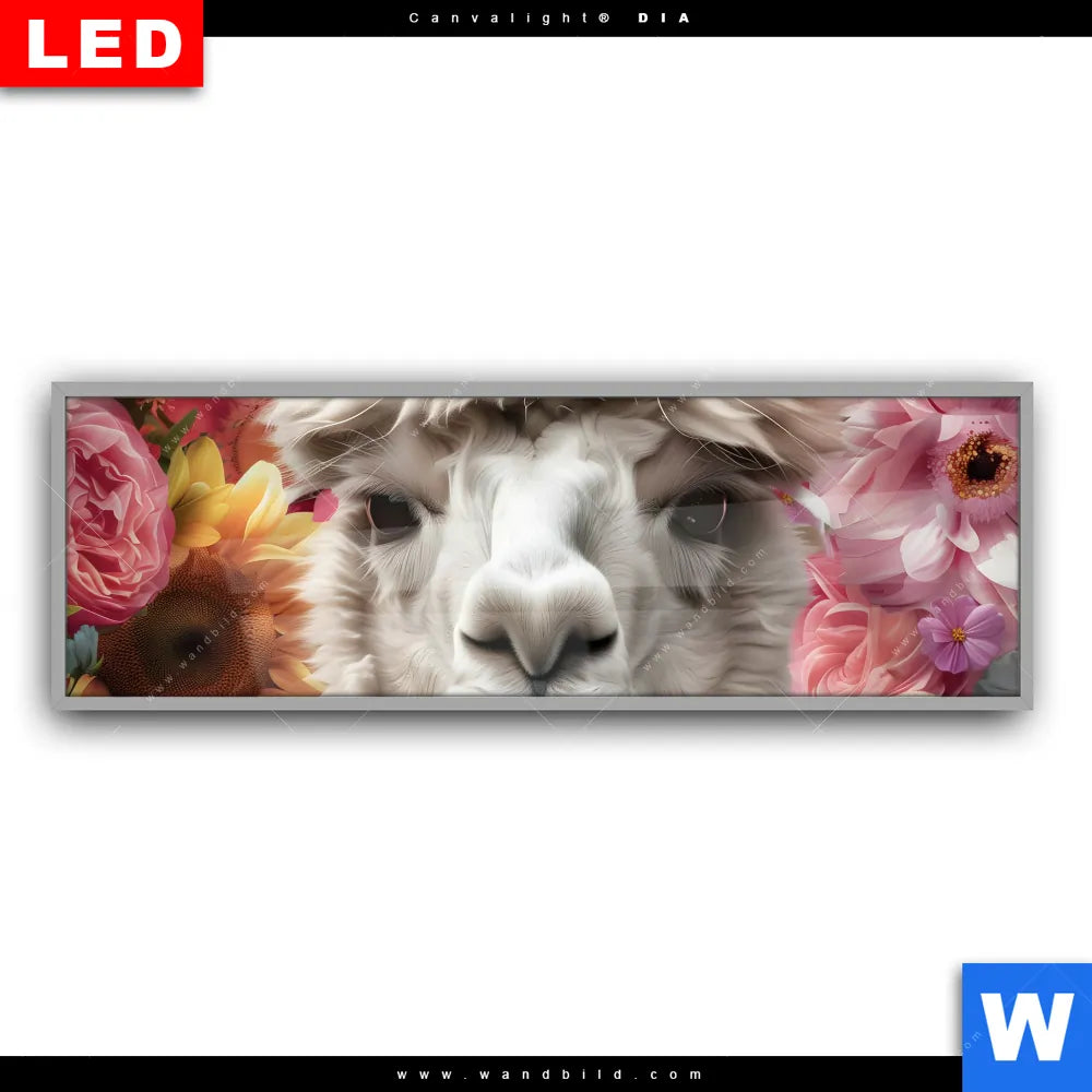 Canvalight® DIA Leuchtbild | Alpaka mit Blumen | Panorama
