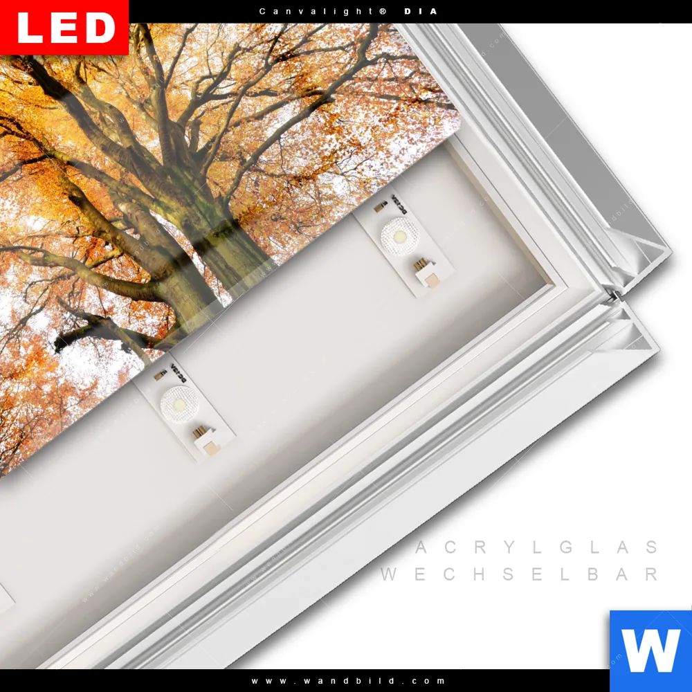 LED-Glasbild mit austauschbarem Acrylglas-Druck (Wechselbild)