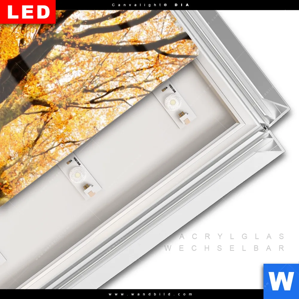 LED-Glasbild mit austauschbarem Acrylglas-Druck (Wechselbild)