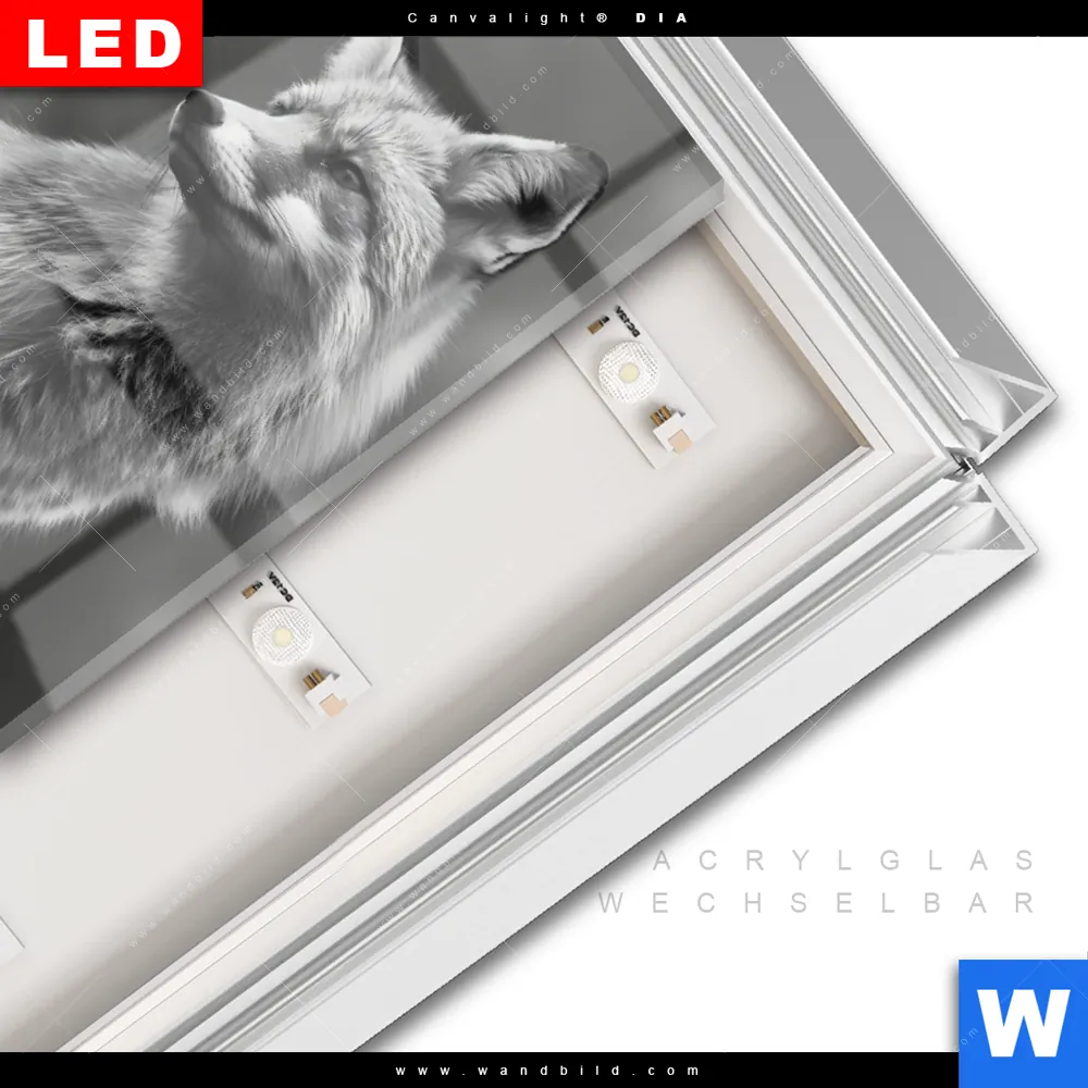 LED-Glasbild mit austauschbarem Acrylglas-Druck (Wechselbild)