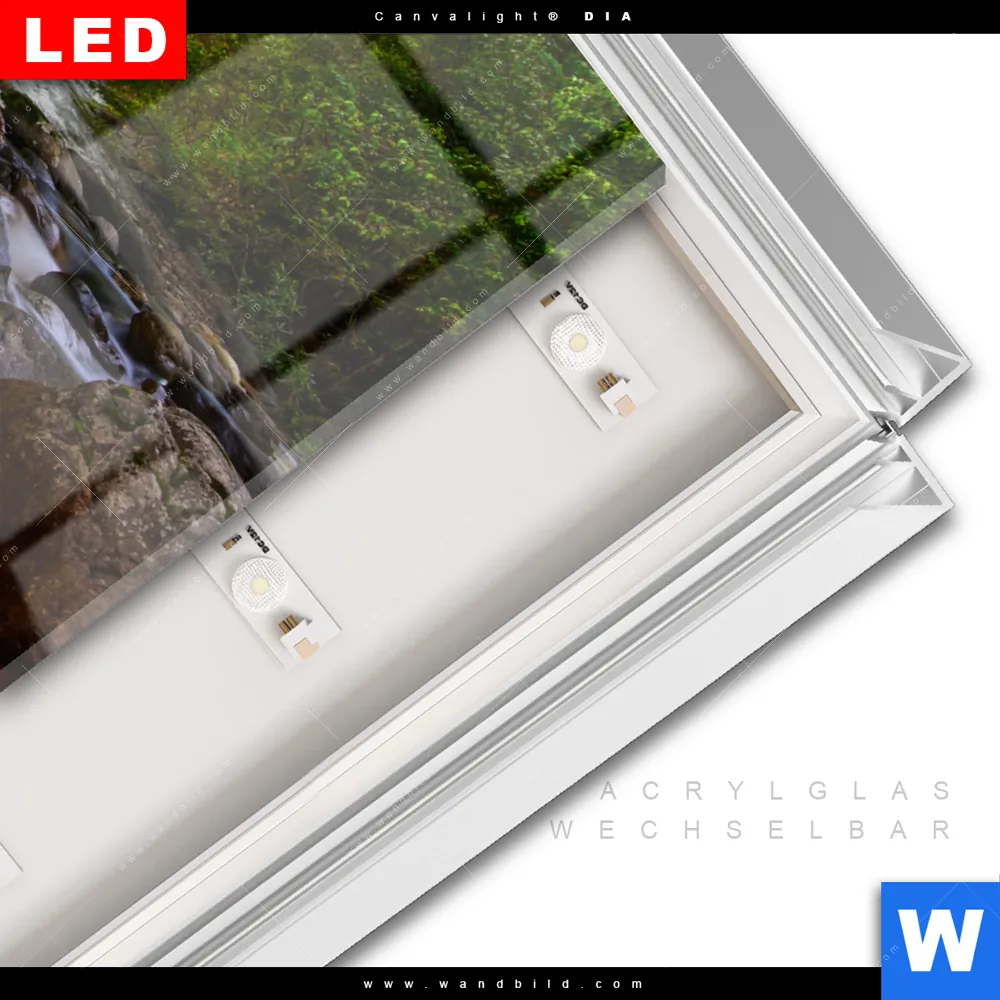 LED-Glasbild mit austauschbarem Acrylglas-Druck (Wechselbild)