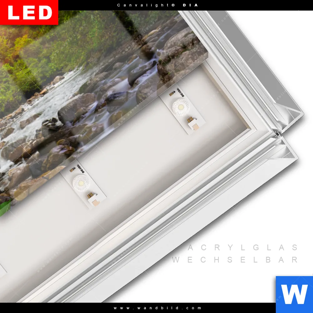LED-Glasbild mit austauschbarem Acrylglas-Druck (Wechselbild)