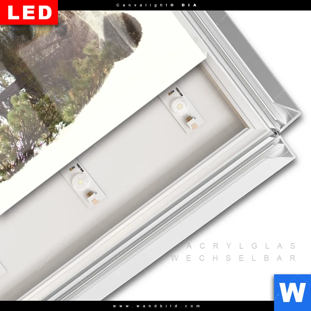 LED-Glasbild mit austauschbarem Acrylglas-Druck (Wechselbild)