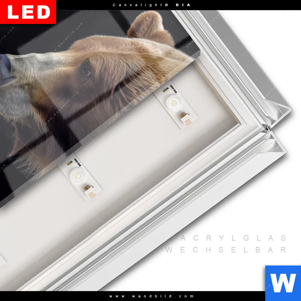 LED-Glasbild mit austauschbarem Acrylglas-Druck (Wechselbild)
