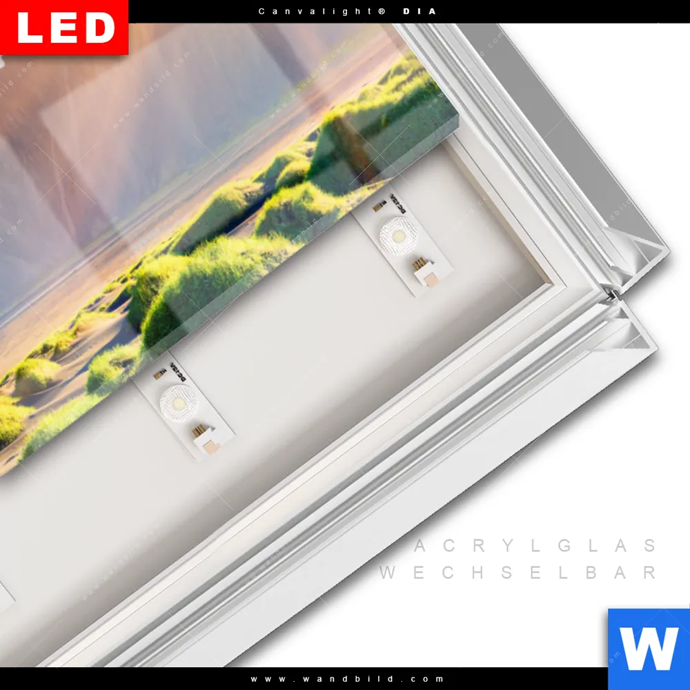 LED-Glasbild mit austauschbarem Acrylglas-Druck (Wechselbild)