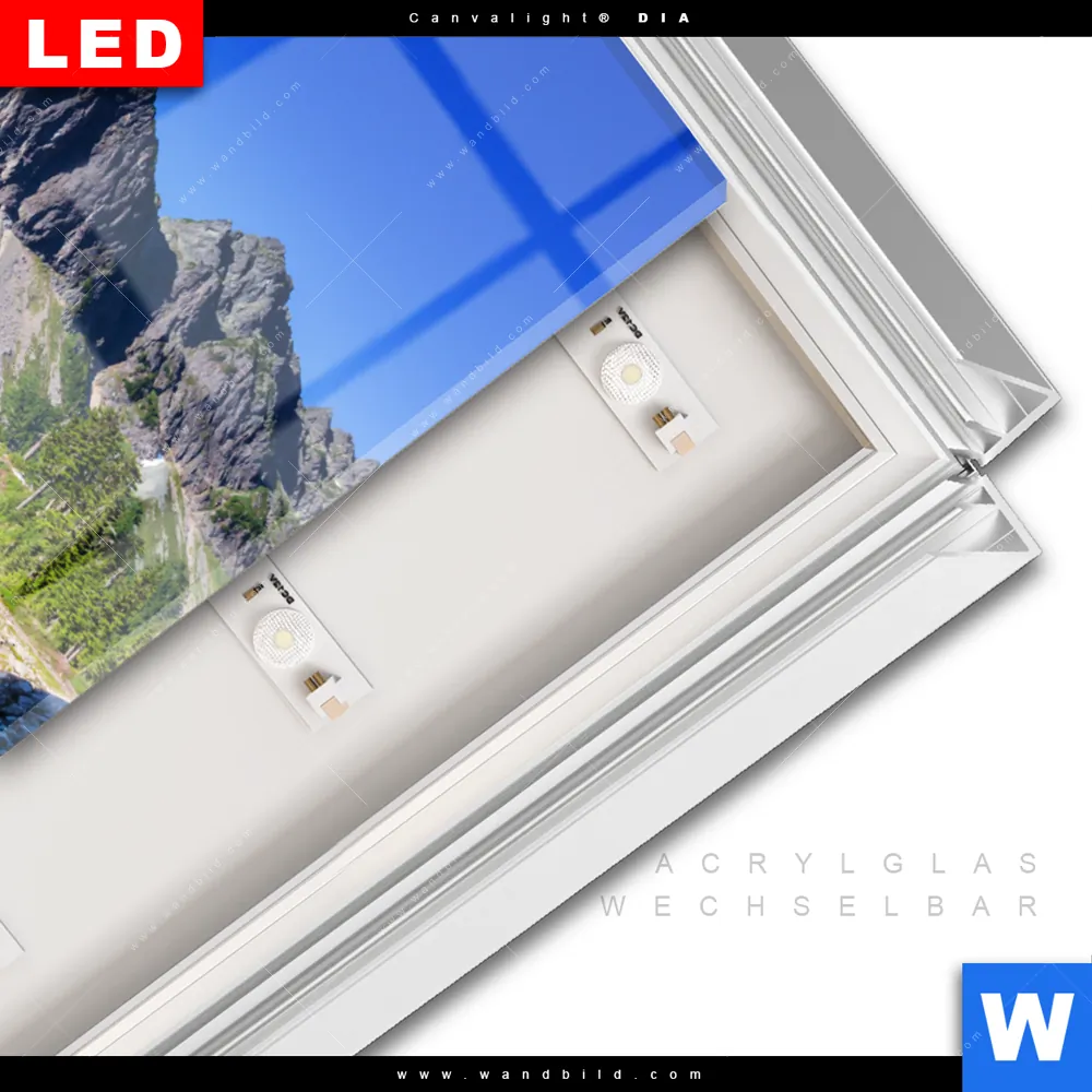 LED-Glasbild mit austauschbarem Acrylglas-Druck (Wechselbild)