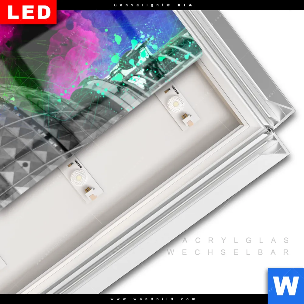 LED-Glasbild mit austauschbarem Acrylglas-Druck (Wechselbild)