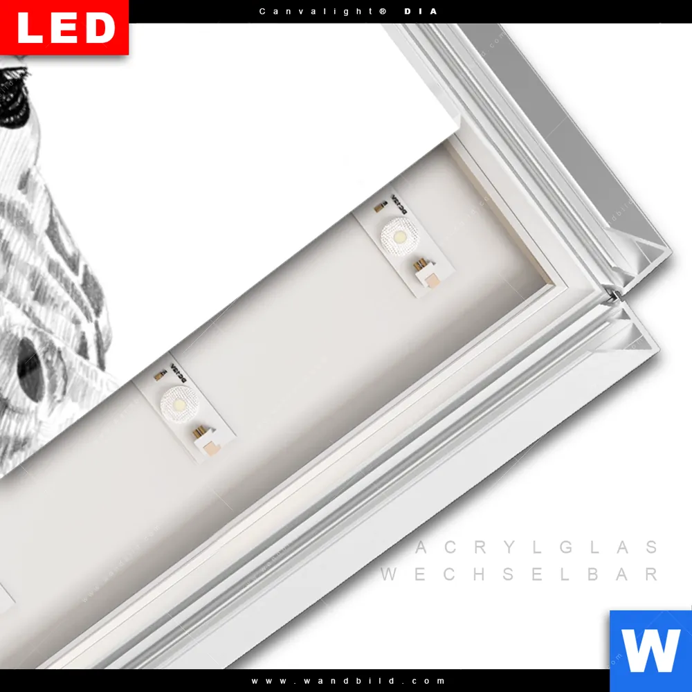 LED-Glasbild mit austauschbarem Acrylglas-Druck (Wechselbild)