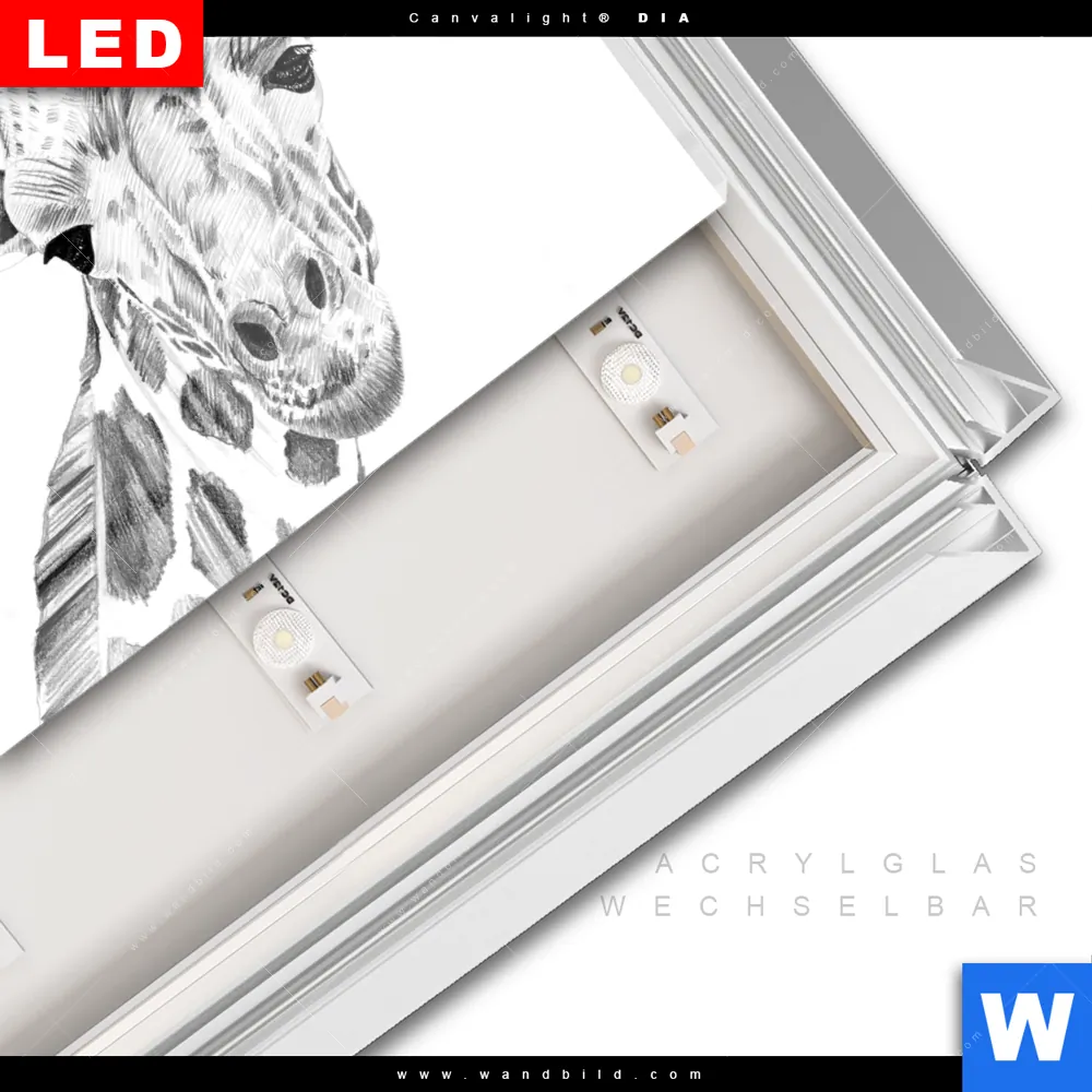 LED-Glasbild mit austauschbarem Acrylglas-Druck (Wechselbild)