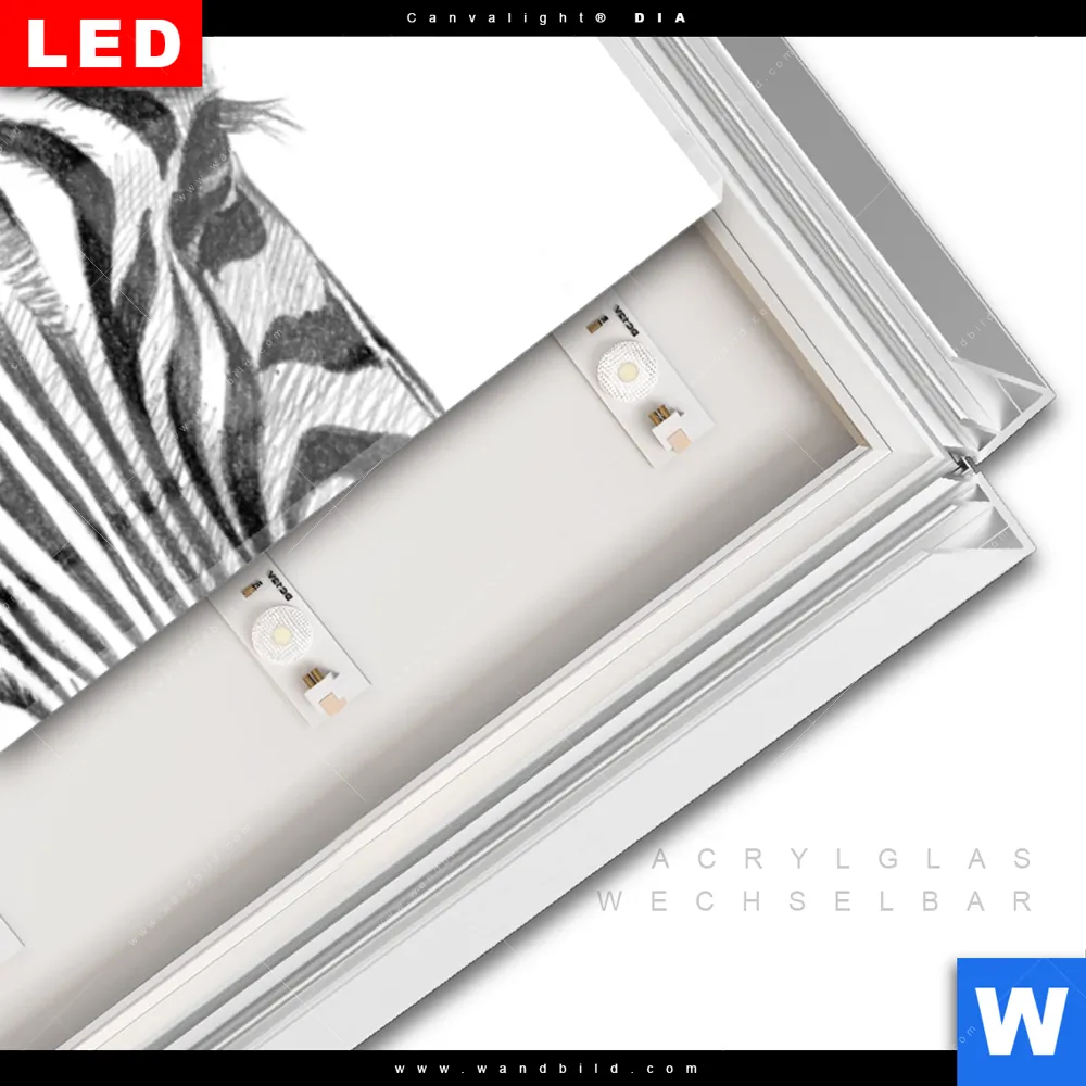 LED-Glasbild mit austauschbarem Acrylglas-Druck (Wechselbild)