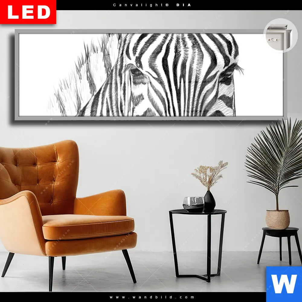Canvalight® DIA Leuchtbild | Bleistiftzeichnung Zebra | Panorama