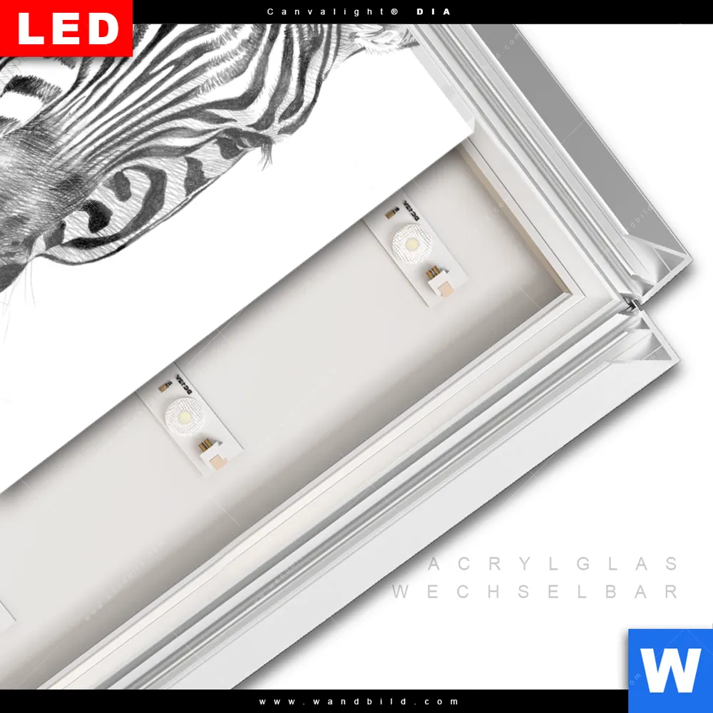 Canvalight® DIA Leuchtbild | Bleistiftzeichnung Zebra | Quadrat