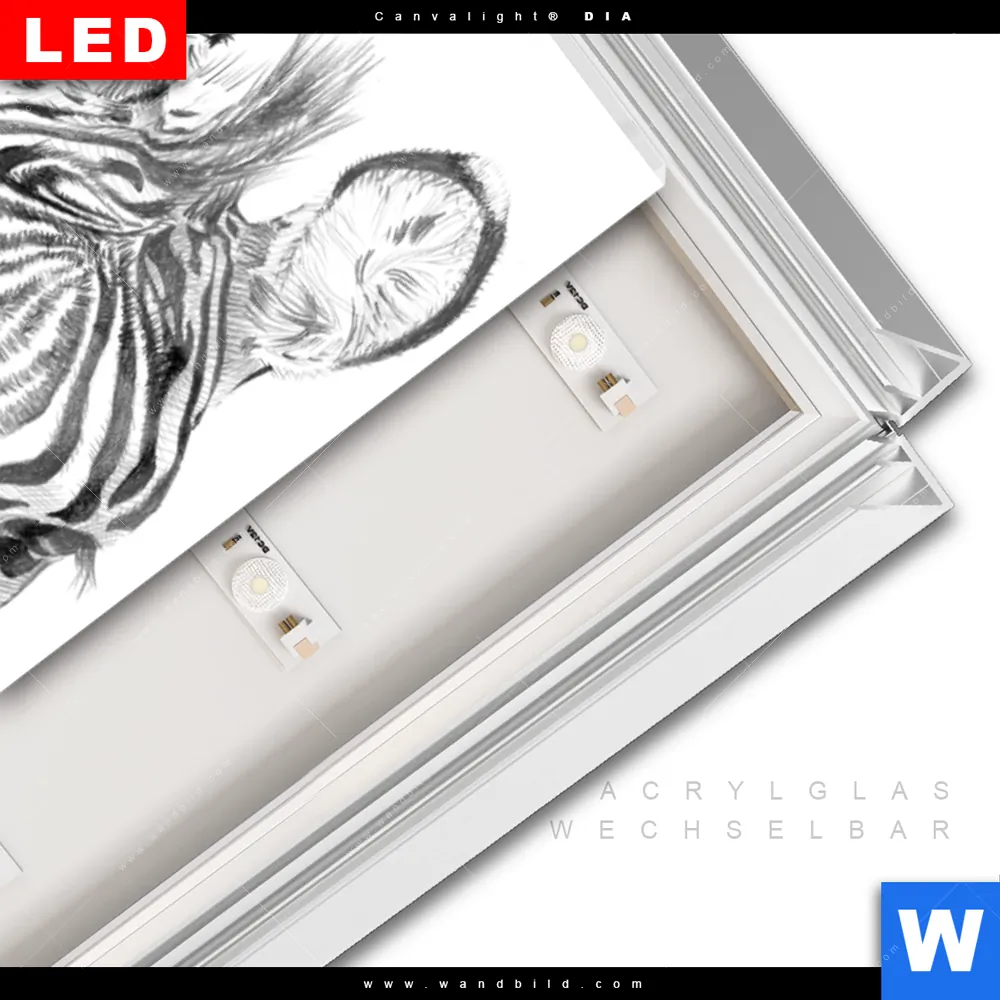 Canvalight® DIA Leuchtbild | Bleistiftzeichnung Zebra | Schmal