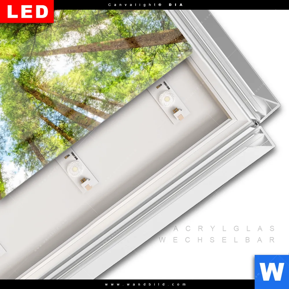 LED-Glasbild mit austauschbarem Acrylglas-Druck (Wechselbild)