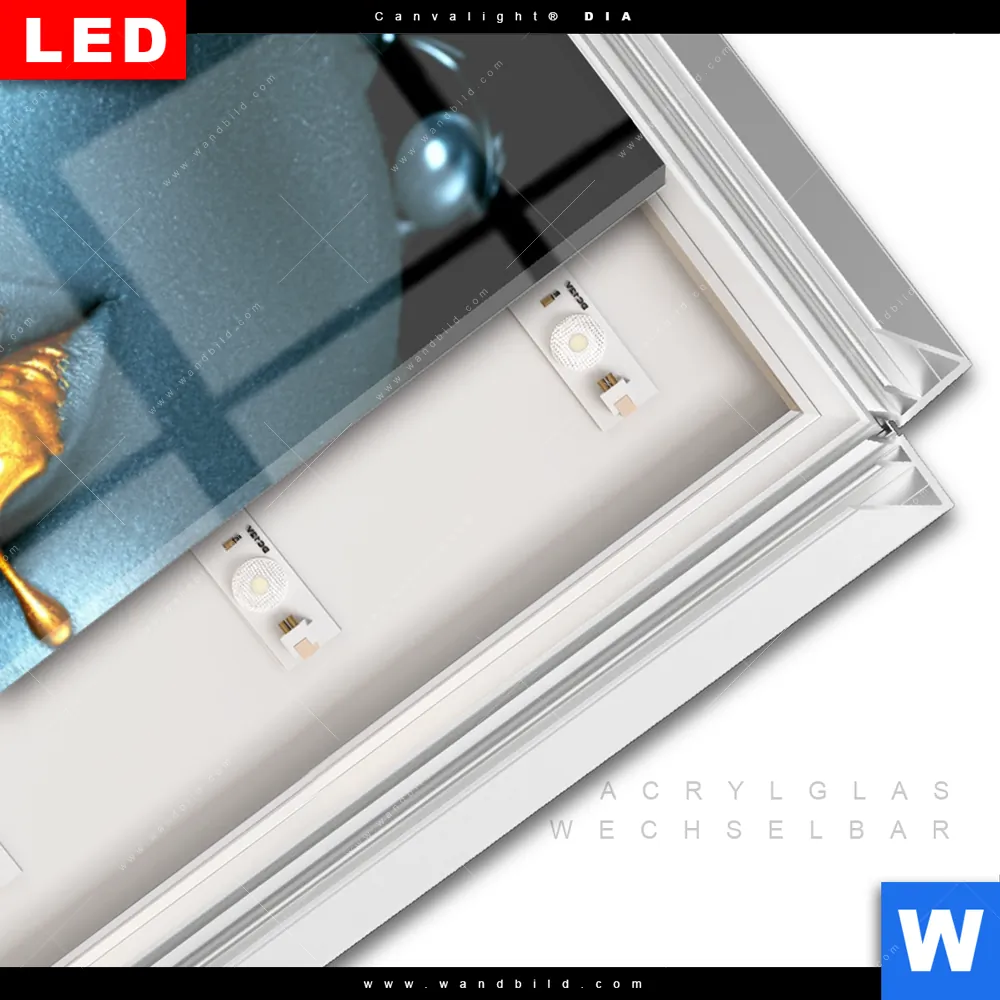 LED-Glasbild mit austauschbarem Acrylglas-Druck (Wechselbild)