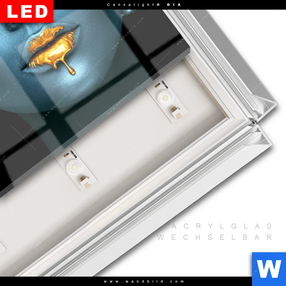 LED-Glasbild mit austauschbarem Acrylglas-Druck (Wechselbild)