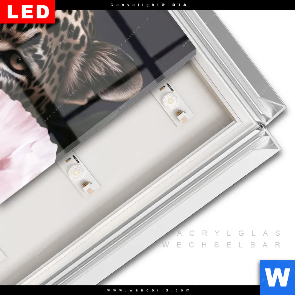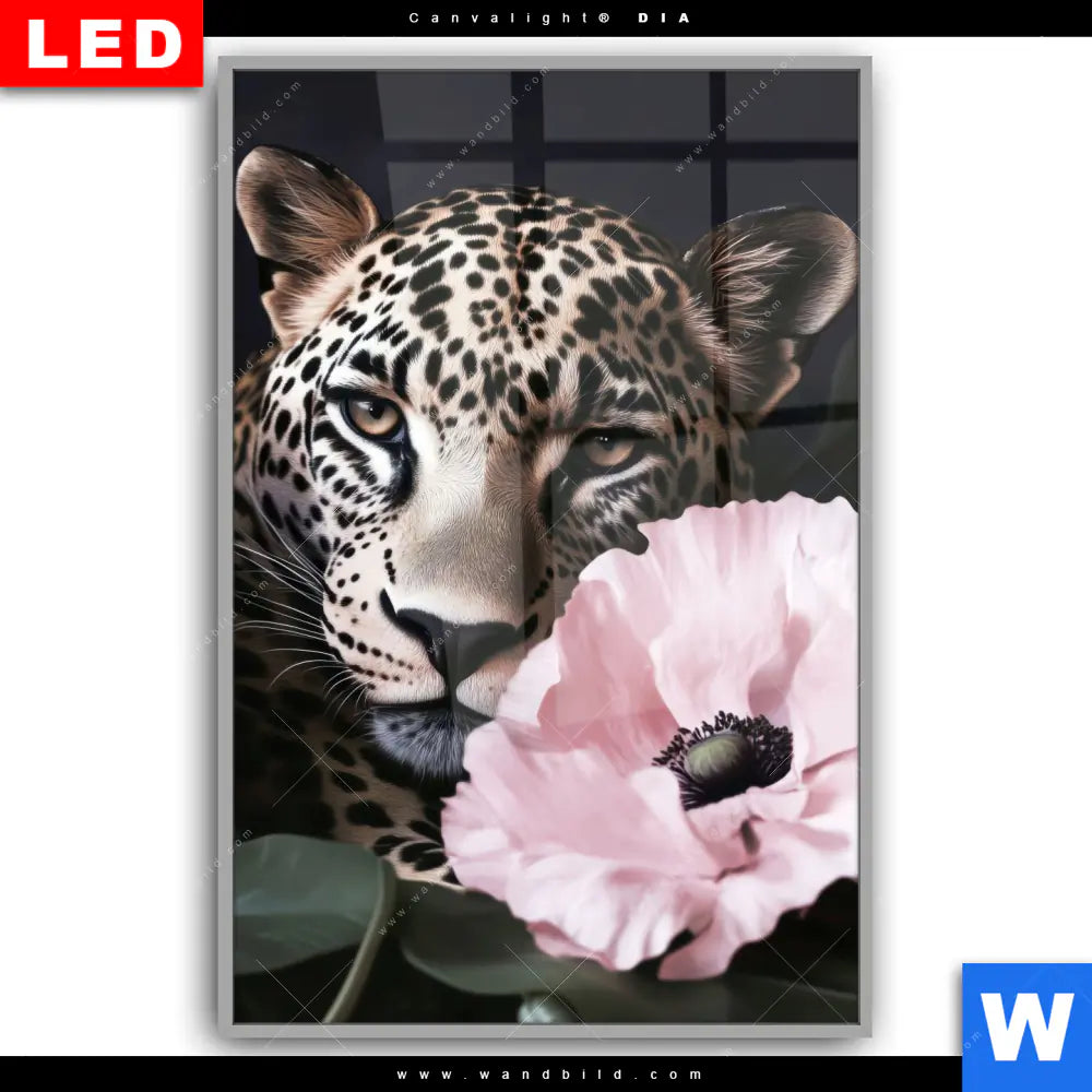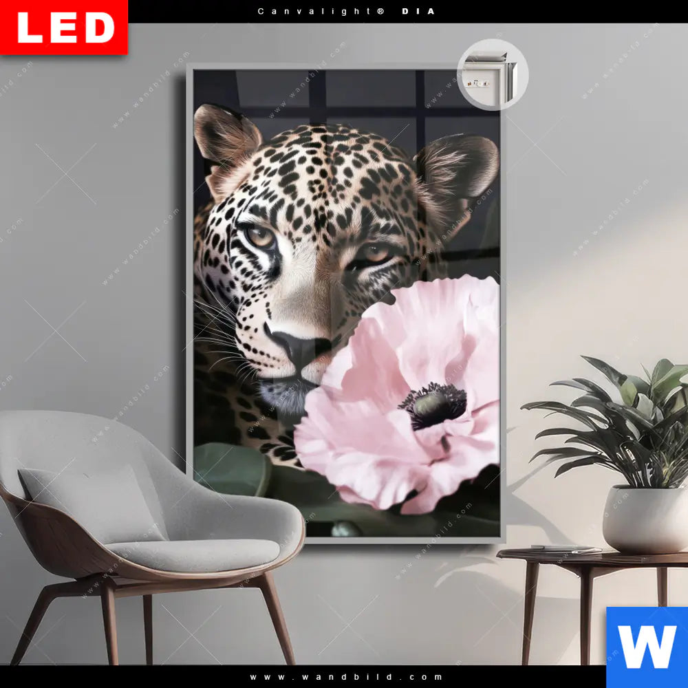 Canvalight® DIA Leuchtbild | Blumen und Raubkatzenmagie | Hochformat