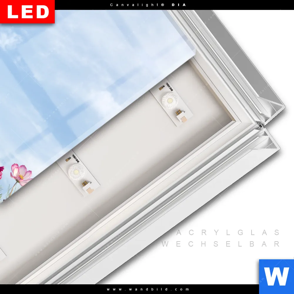 LED-Glasbild mit austauschbarem Acrylglas-Druck (Wechselbild)