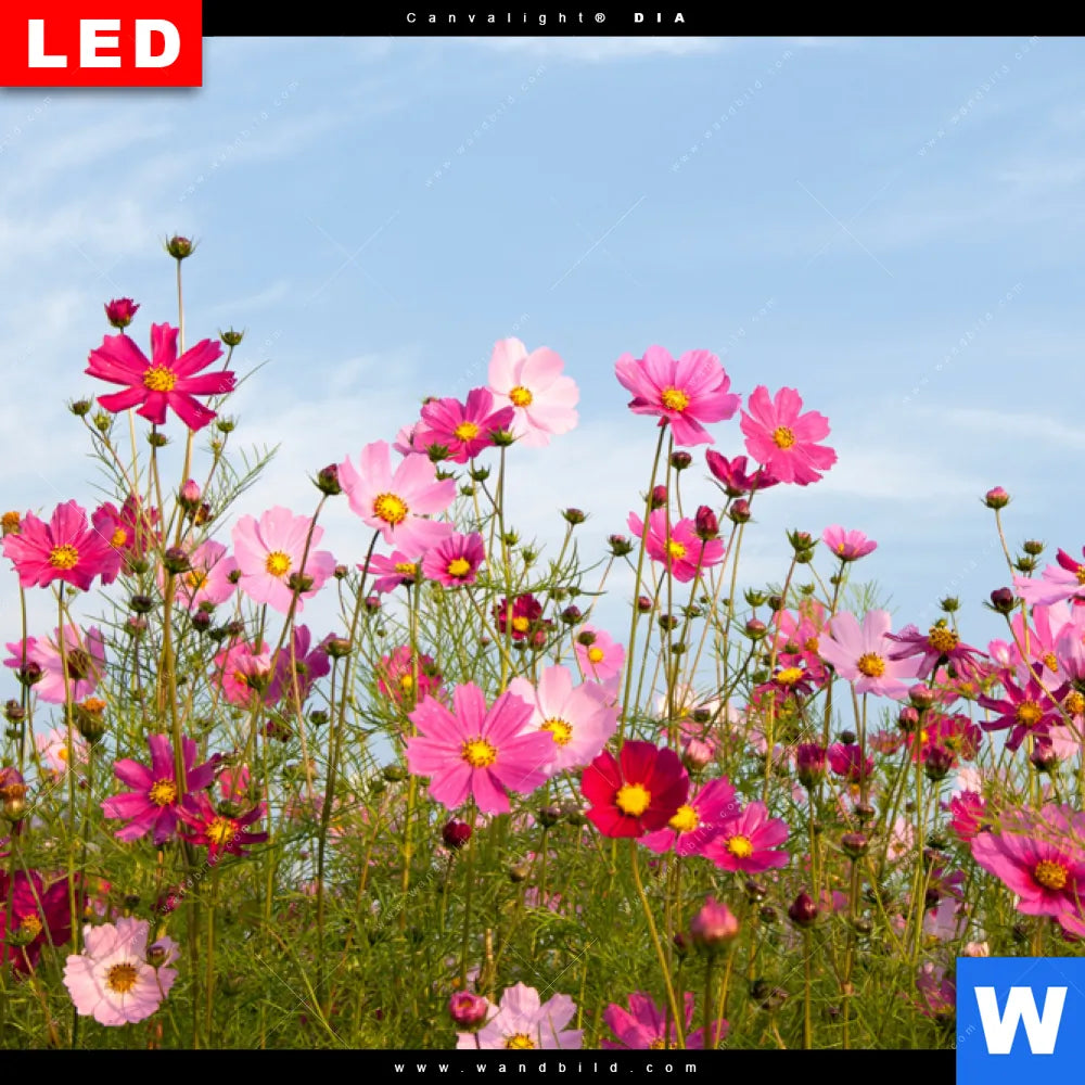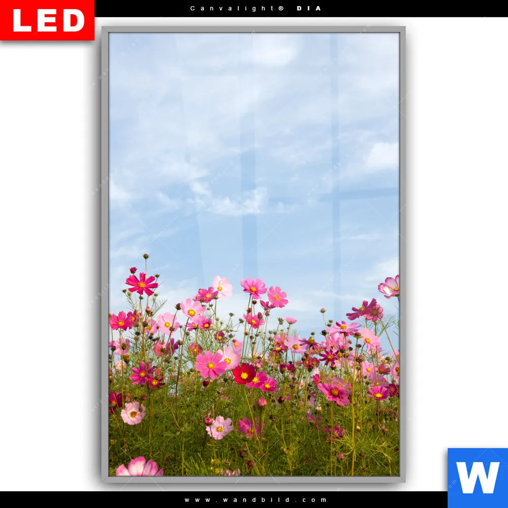 Canvalight® DIA Leuchtbild | Blumenwiese bei strahlend blauem Himmel | Hochformat