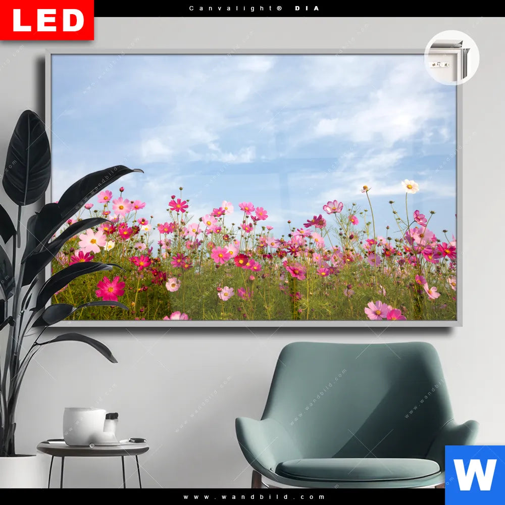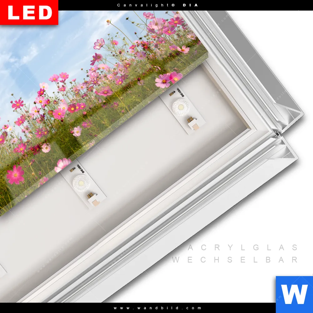 Canvalight® DIA Leuchtbild | Blumenwiese bei strahlend blauem Himmel | Querformat