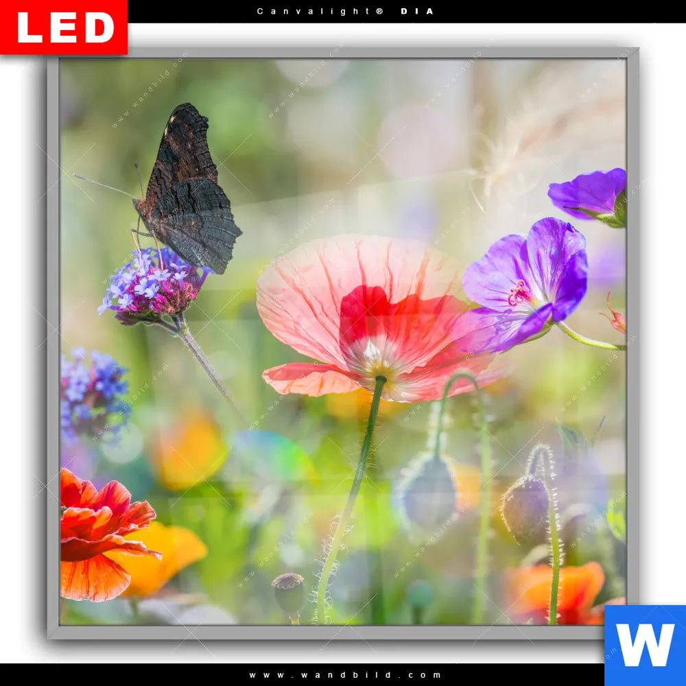 Canvalight® DIA Leuchtbild | Blumenwiese mit Schmetterlingen | Quadrat