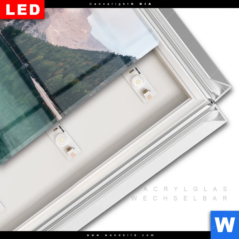 LED-Glasbild mit austauschbarem Acrylglas-Druck (Wechselbild)