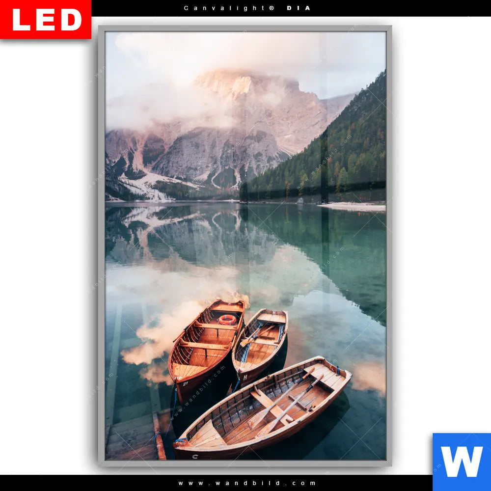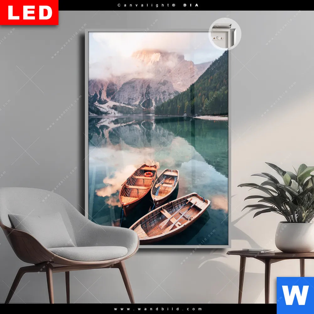 Canvalight® DIA Leuchtbild | Boote im Bergsee | Hochformat