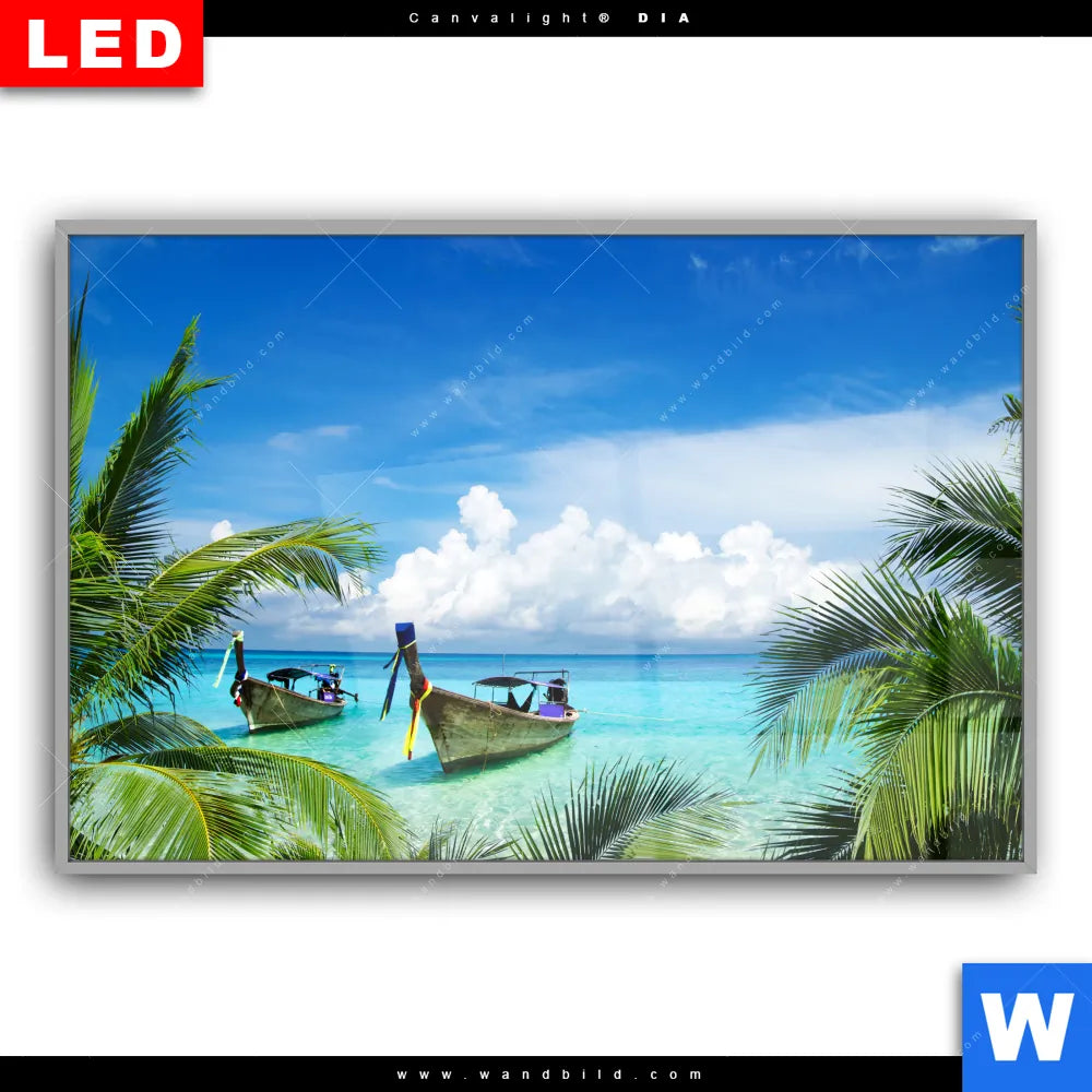Canvalight® DIA Leuchtbild | Boote im tropischen Meer | Querformat