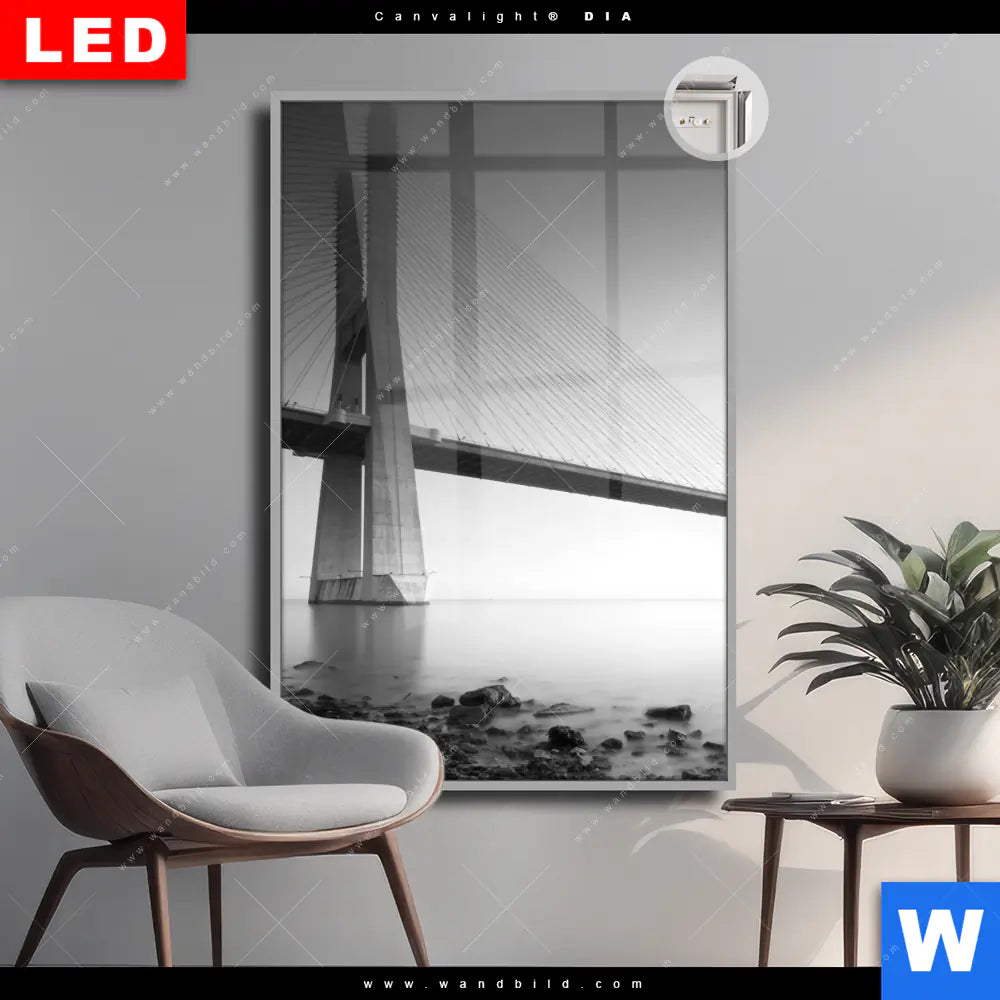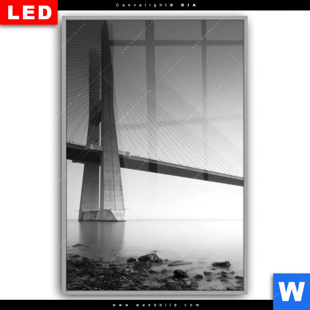 Canvalight® DIA Leuchtbild | Brücke am weiten Meer | Hochformat