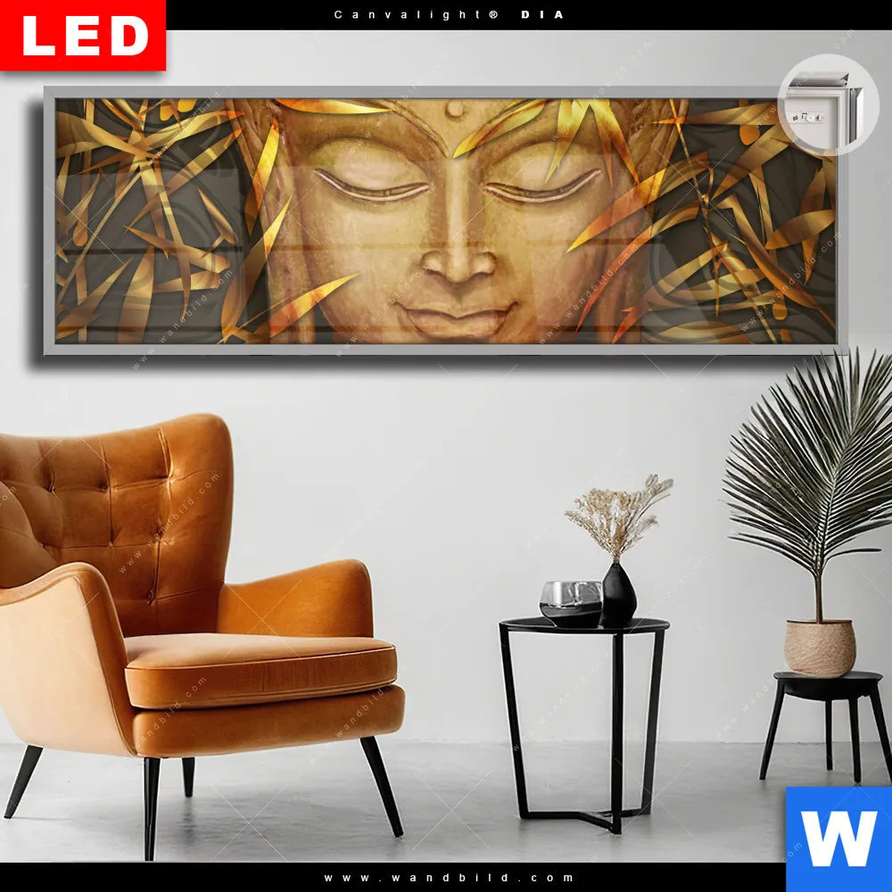 Canvalight® DIA Leuchtbild | Buddha & Bambus in Gold | Panorama