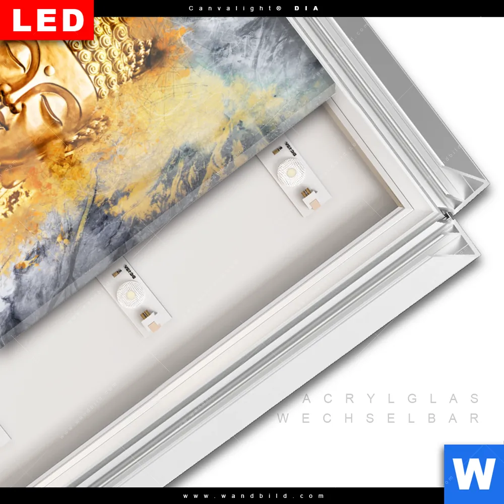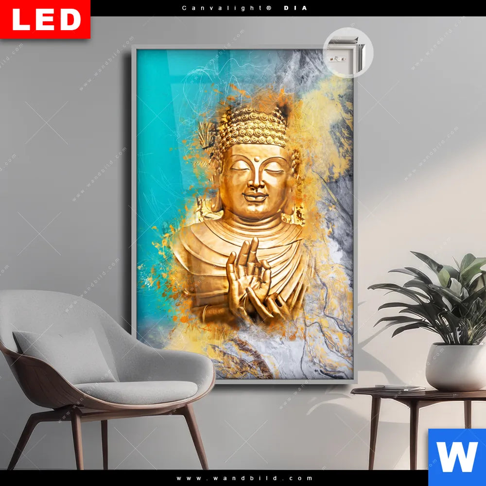 Canvalight® DIA Leuchtbild | Buddha Gold & Türkis | Hochformat