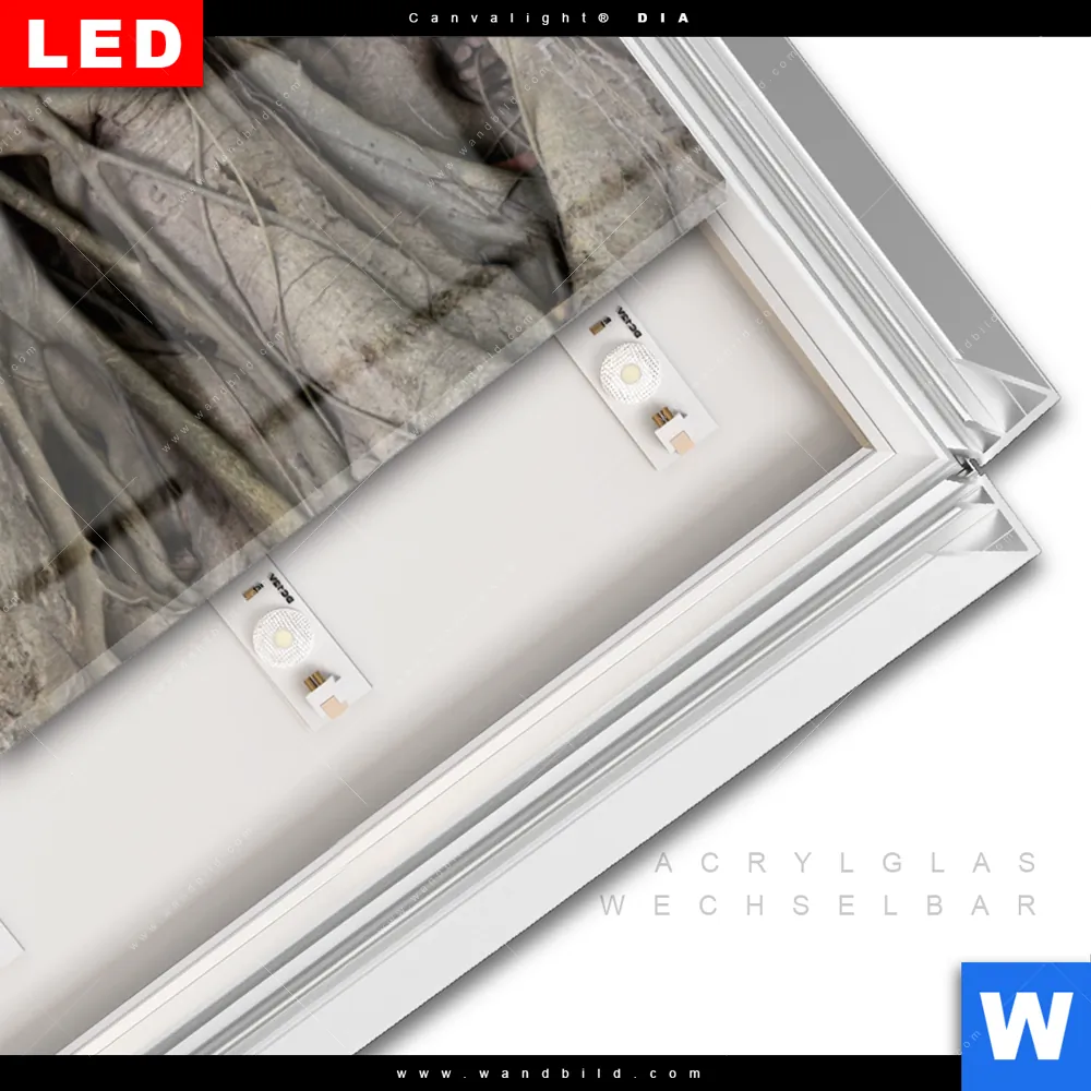 LED-Glasbild mit austauschbarem Acrylglas-Druck (Wechselbild)