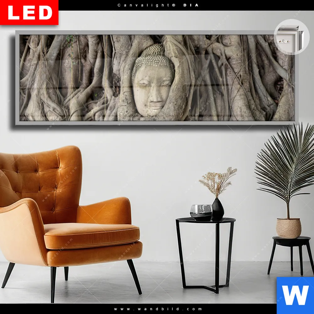 Canvalight® DIA Leuchtbild | Buddha in Baumwurzeln | Panorama