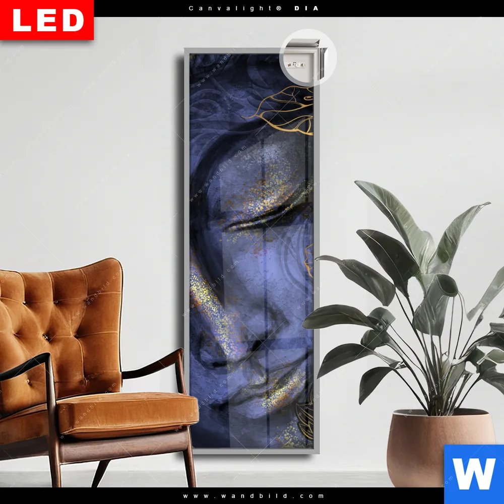 Canvalight® DIA Leuchtbild | Buddha in Gold & Blau | Schmal