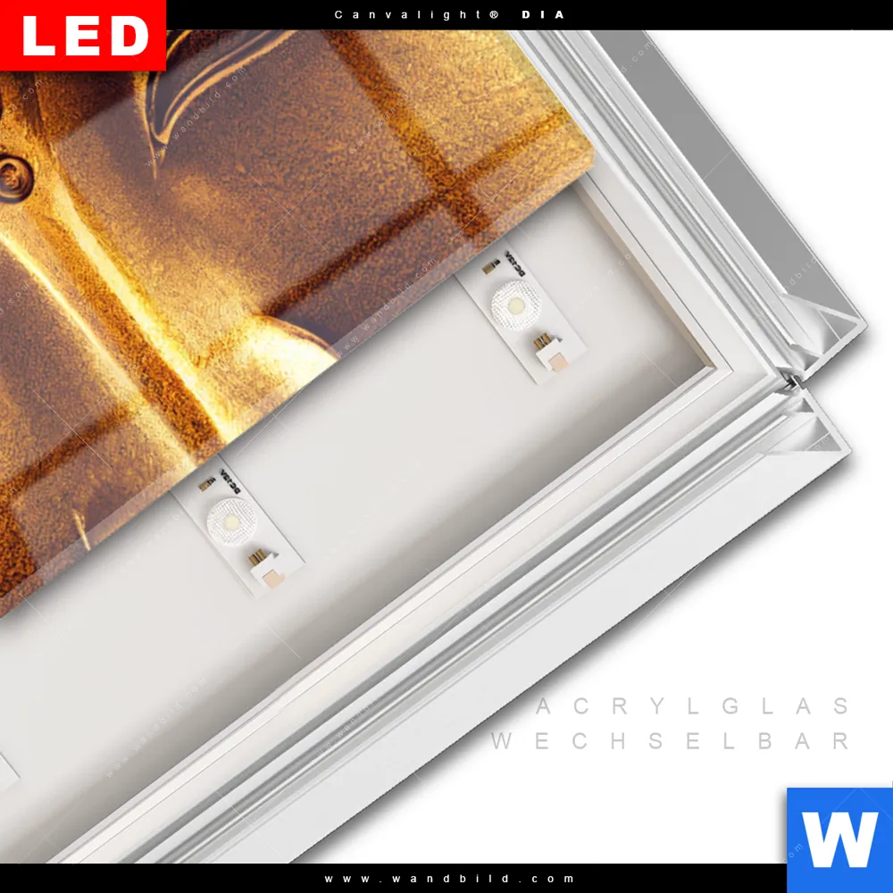LED-Glasbild mit austauschbarem Acrylglas-Druck (Wechselbild)