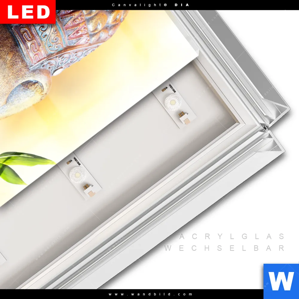 LED-Glasbild mit austauschbarem Acrylglas-Druck (Wechselbild)