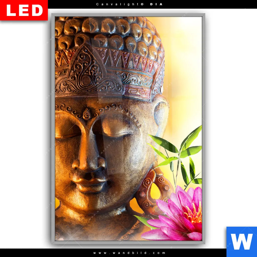 Canvalight® DIA Leuchtbild | Buddha Kopf & Seerose | Hochformat
