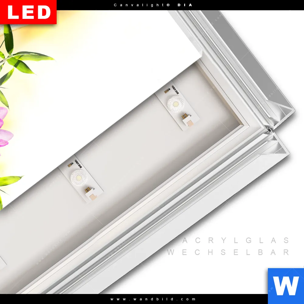 LED-Glasbild mit austauschbarem Acrylglas-Druck (Wechselbild)
