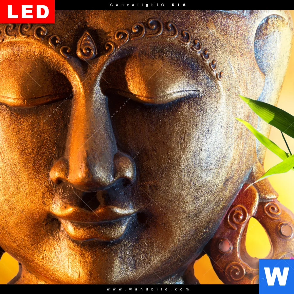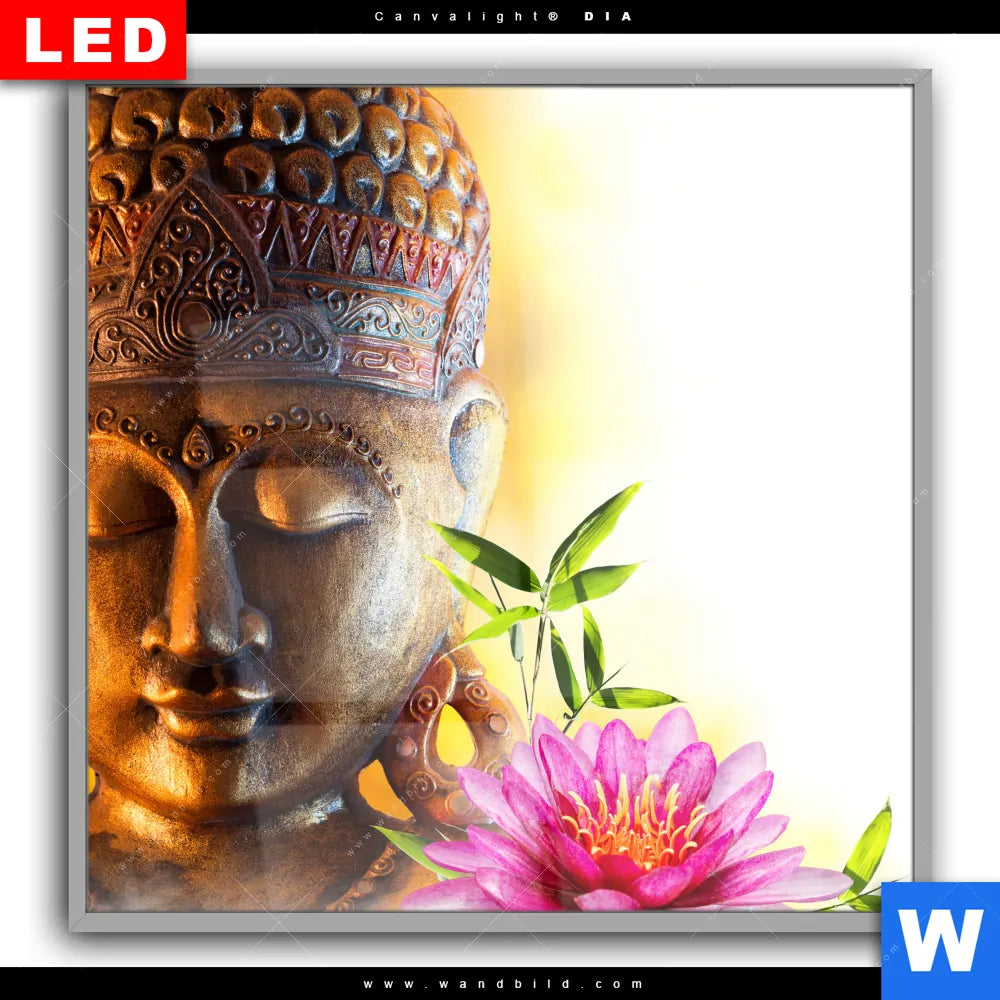Canvalight® DIA Leuchtbild | Buddha Kopf & Seerose | Quadrat